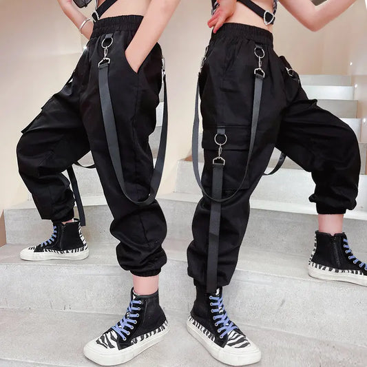 Girls Hip Hop Cargo Joggers – Streetwear Baggy Pants 5-14Y