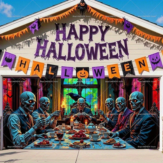 Halloween Party Photo Backdrop – Skull, Pumpkin & Tombstone Scene