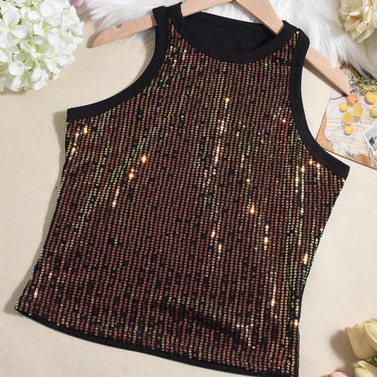 Y2K Sequined Tank Top for Women | Sexy Sleeveless Clubwear