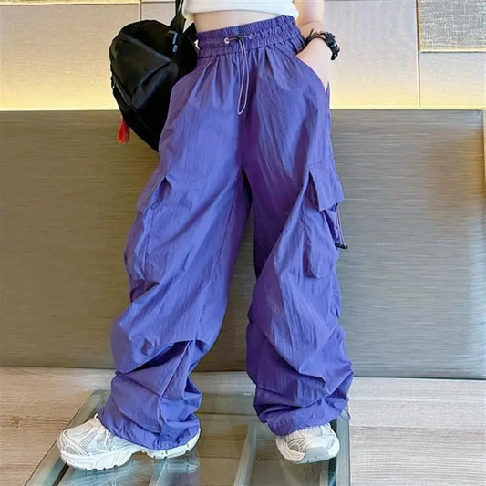 Girls Summer Cargo Pants – Trendy Loose-Fit Wide-Leg Look