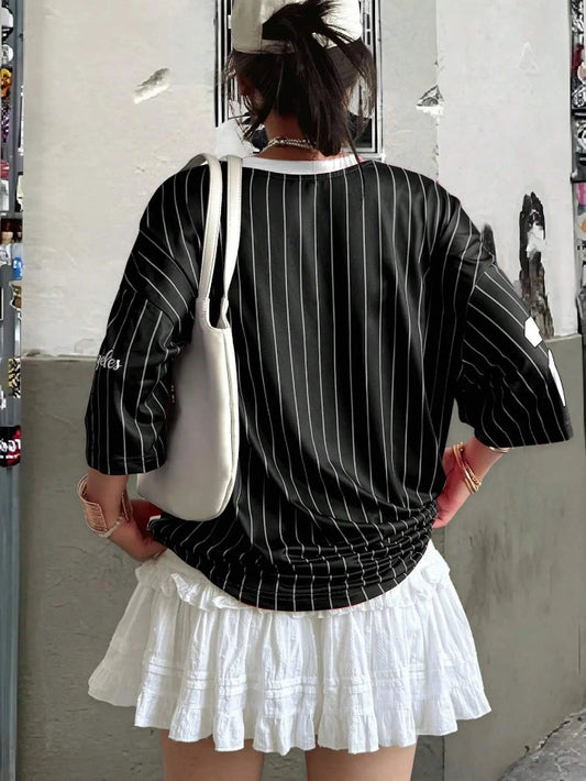 V-Neck Sports T-Shirt – Casual Digital Print Top