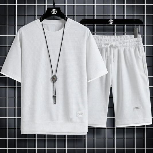 Men’s Waffle Tracksuit – Summer T-Shirt & Shorts Set