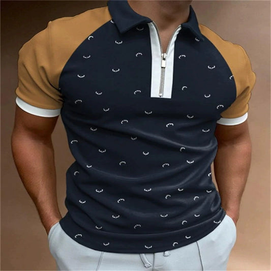 Men Summer Short Sleeve Spell Color Polo Shirt Sport Golf Polo