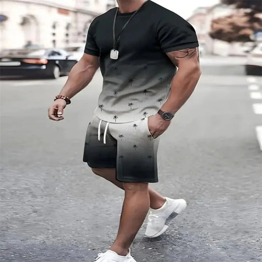 Men’s Summer Sports Set – Crew Neck Tee & Shorts Combo