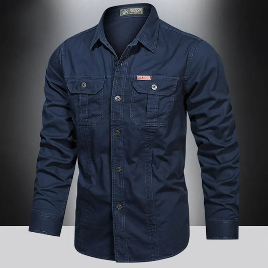 Cotton Cargo Shirt for Men – Long Sleeve Multi-Pocket Shirt