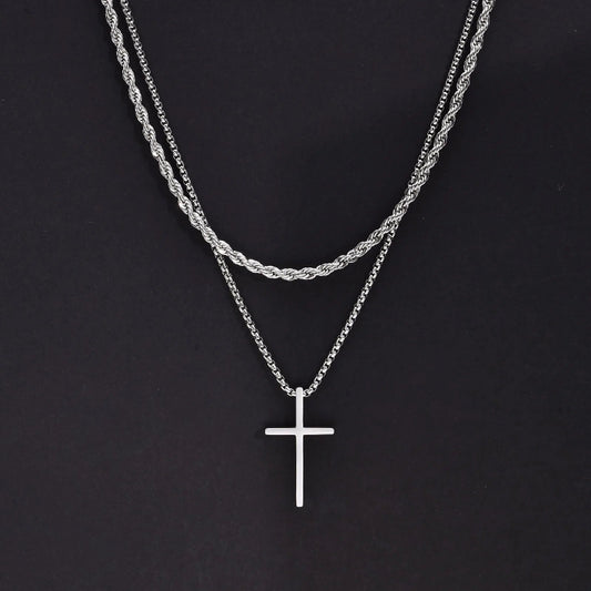 Vnox Men’s Stainless Steel Cross Necklace – Layered Rope Chain