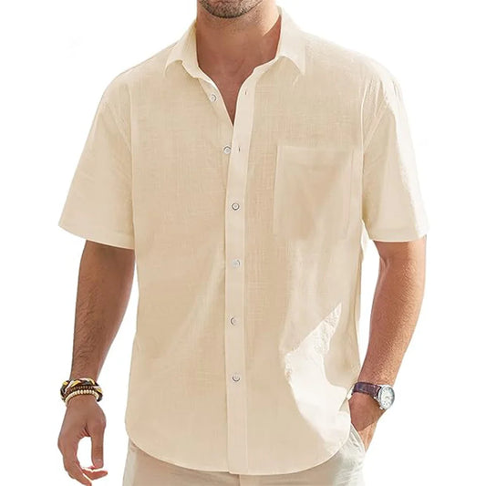 Men's Cotton Linen Short Sleeve Shirt – Summer Casual Beachwear