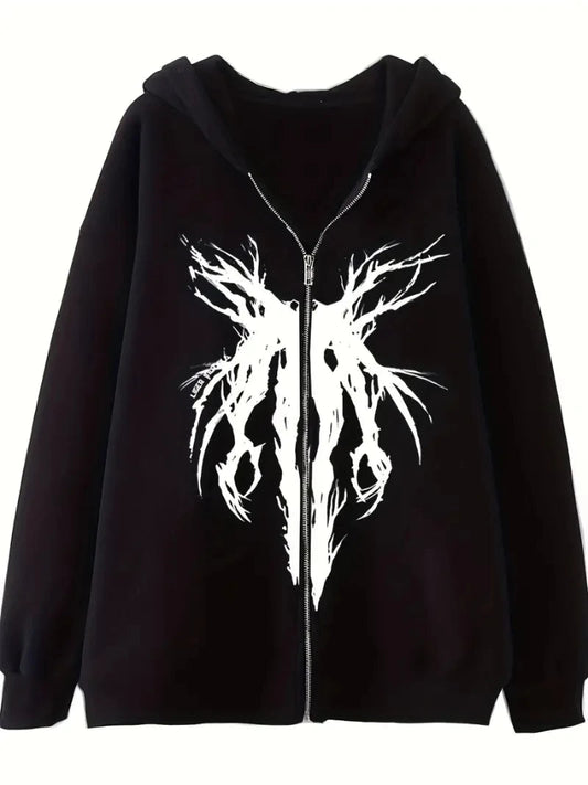 Shop Gothic Graphic Zip-Up Hoodie for Women | Casual Streetwear Hoodie