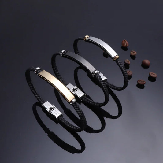 Custom Name Leather Bracelet – Punk Stainless Steel ID Band