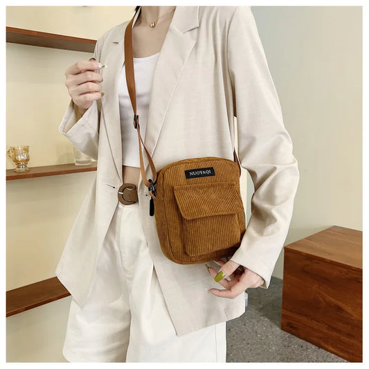 Women’s Corduroy Shoulder Bag – Striped Canvas Tote Crossbody