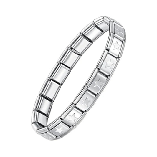 Fashion Stainless Steel Stars Cross Elastic Italian Links Charm Bracelet 9mm Width Simple Design Bangle Men Women DIY Jewelry