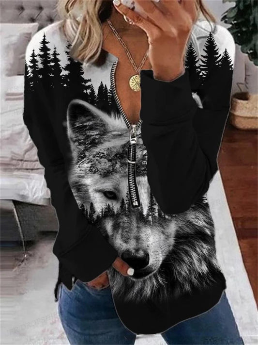 Wolf Hoodies Women Fashion Zipper - Vintage Oversized Animal Sweatshirt