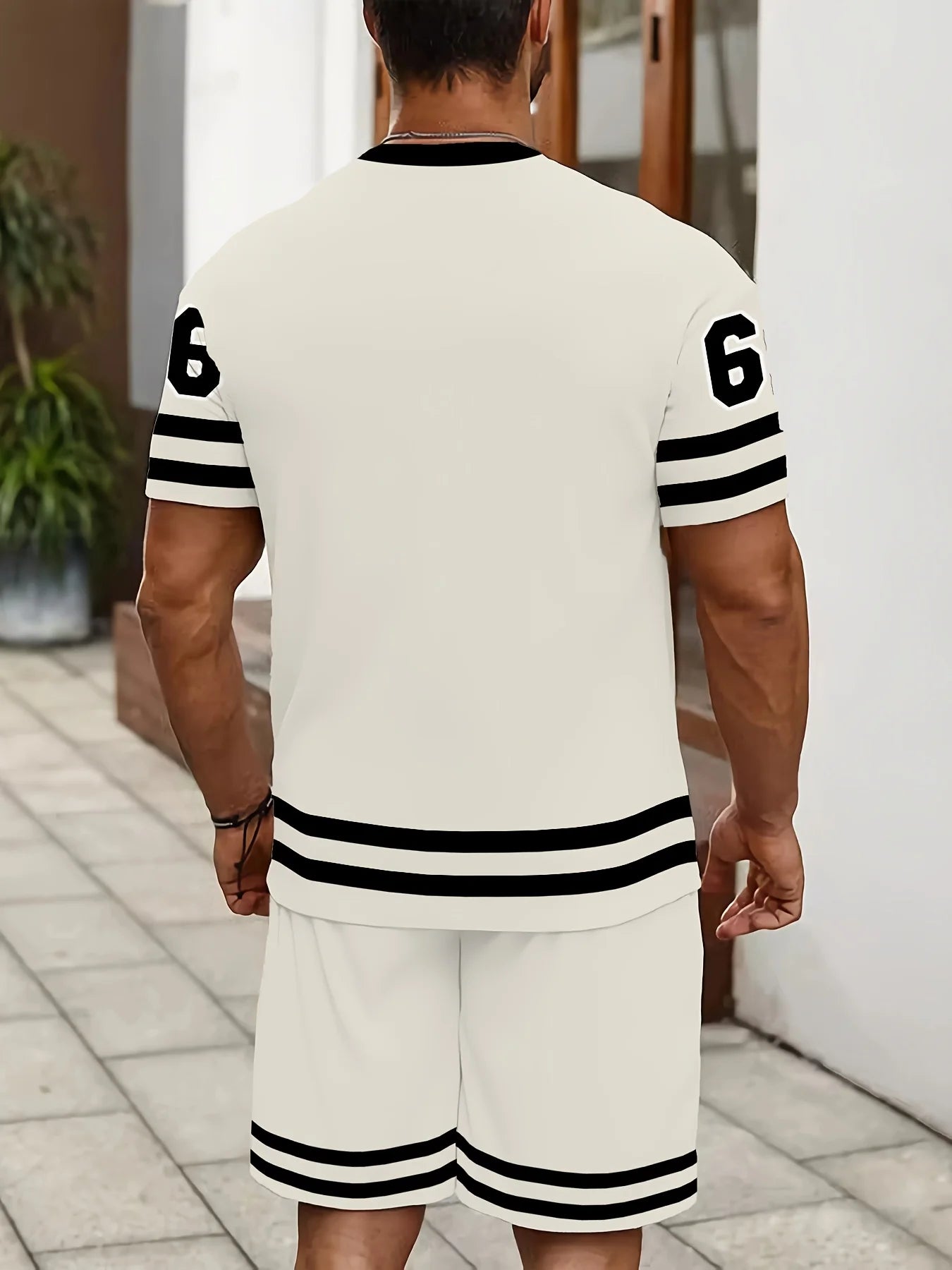 Gear up for summer with this bold and athletic Men’s No. 66 T-Shirt & Shorts Set, blending retro sports style with casual comfort. Designed for football fans, streetwear lovers, and anyone who appreciates a classic athletic look, this vintage-inspired set features a striped short-sleeve T-shirt with “No. 66” letter print and matching breathable shorts.