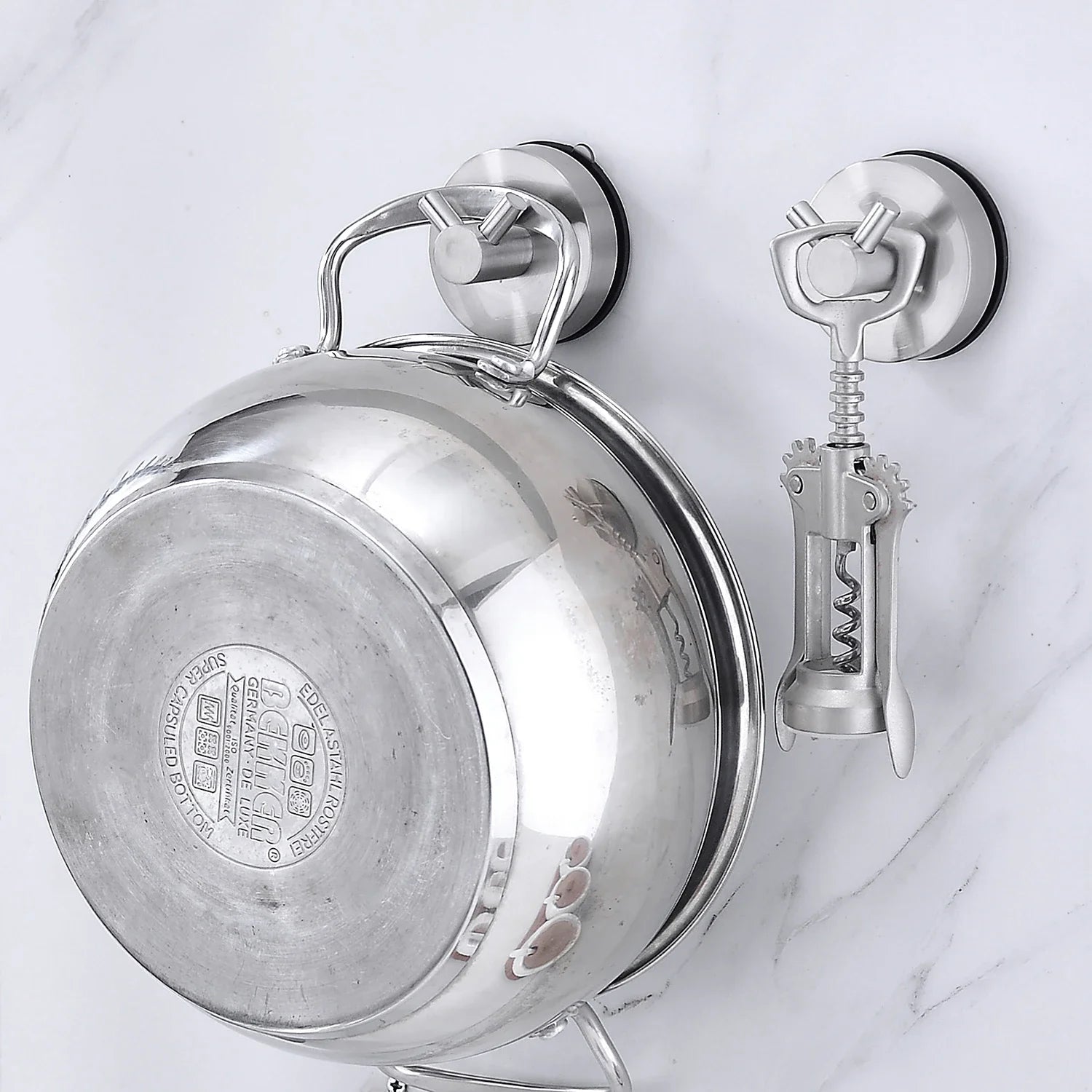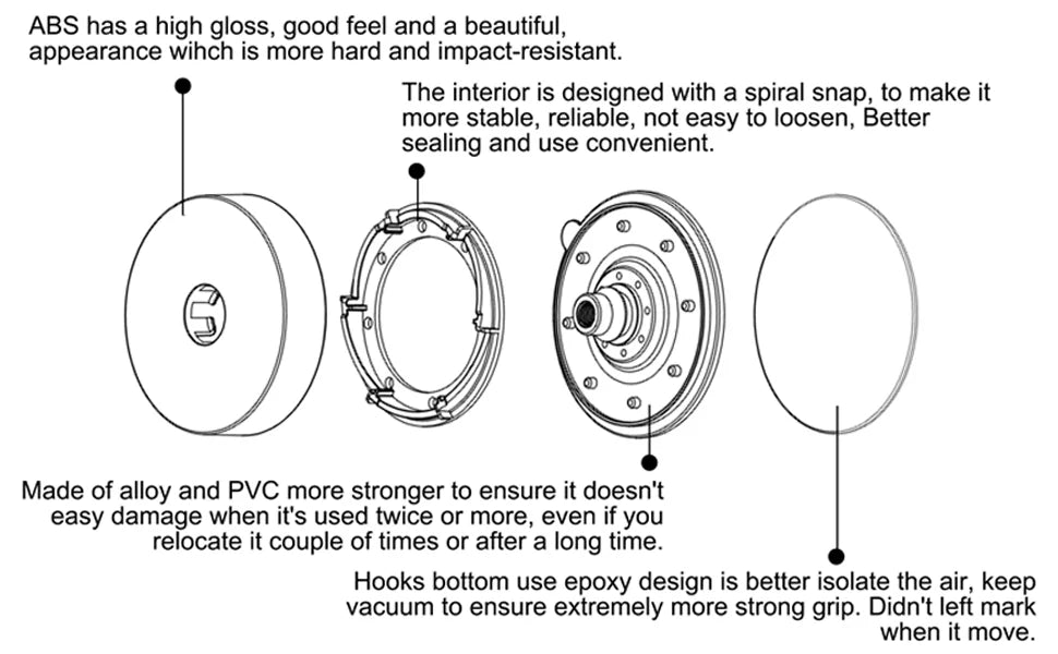 Easy Install & Reusable-Vacuum suction cup hooks are easy to install, with no tools, no drilling, and no surface damage, takes a few seconds to finish installation, Press the suction cup hooks to release the air and twist the knob cap clockwise by hand (until hearing a "Click “sound ) to lock the suction cup on a smooth surface after cleaning with coming cleaning cloth.